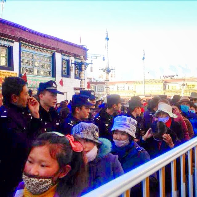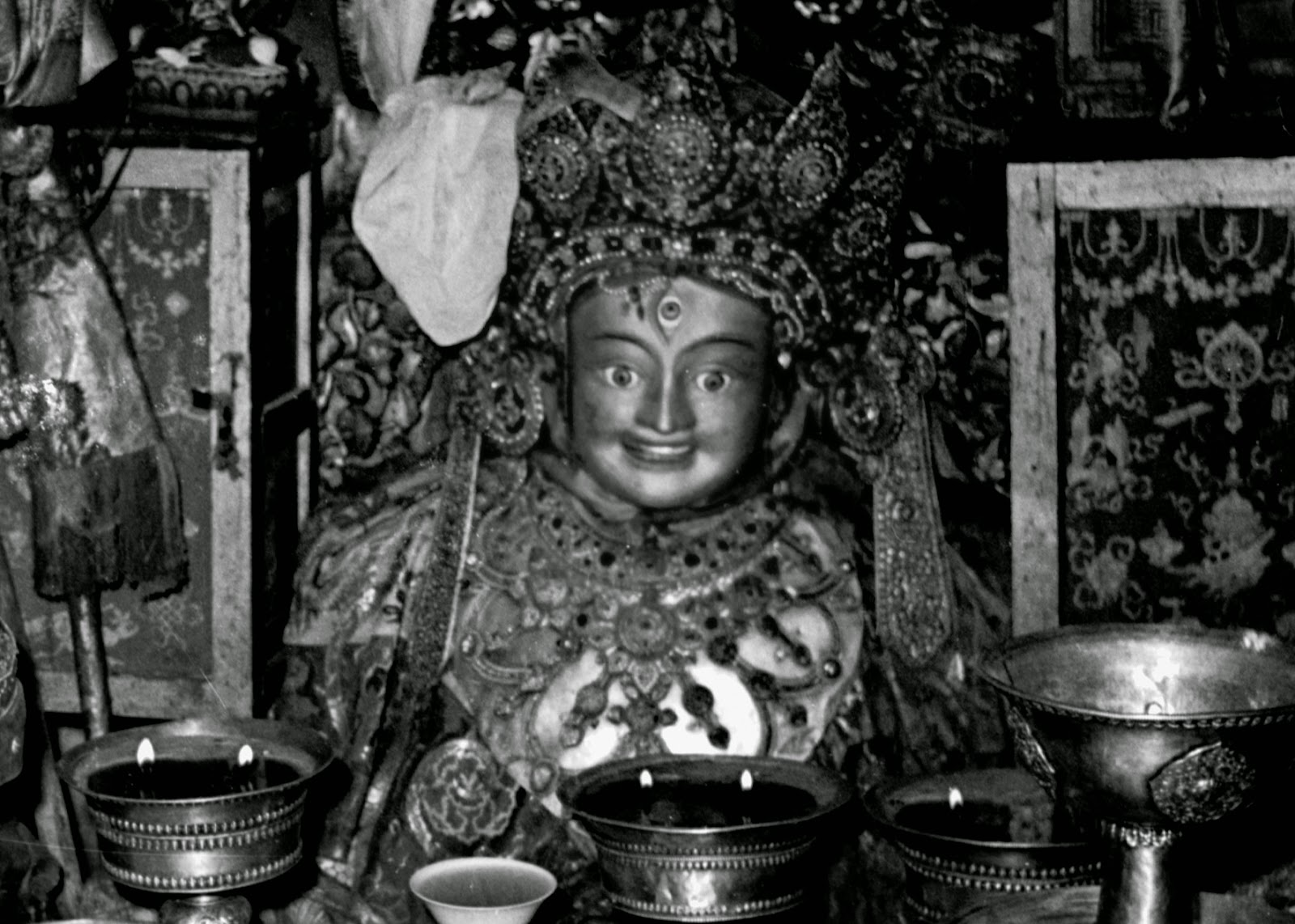 而下面这组照片,为网友于昨日拍摄。头两张照片,是文革结束后重新修复的两位女神塑像,重又供奉于大昭寺内。左边是白拉白东玛,右边是白拉姆。对比过去照片,白拉姆塑像的面貌有气质上的不同,旧的秀丽,新的丰满而威严。