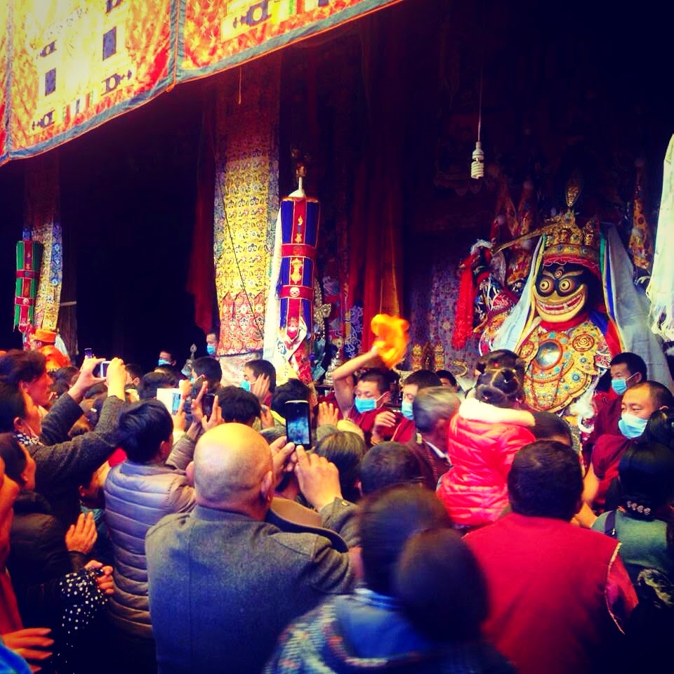 今年的公历12月6日,是藏历10月15日,在拉萨传统上,是“白拉日珠”节,汉语译为“吉祥天女游幻节”,简称“天女节”,与大昭寺二楼拐角供奉的两位女神——长着蛙脸的白拉白东玛与三目圆睁、露齿而笑的白拉姆有关。其实她俩都是万神殿中居首位的女护法、也是大昭寺乃至拉萨的大护法——“吉祥天女”班丹拉姆示现的不同法相,但在民间传说里,却是班丹拉姆的女儿。