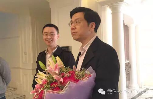 李开复归来后在北京家中接受老友献花(腾讯科技配图)