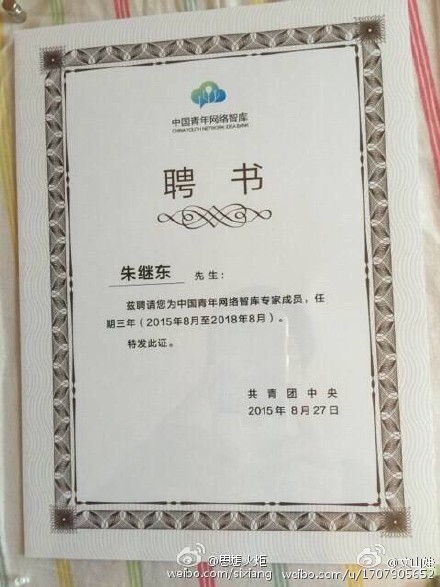 @文山娃:給正能量同好們簡單解釋下:此智庫為中國青年網主持設立,中青網頂頭上司為團中央網絡影視中心,該中心與中國青年報行平級。中青報的官網叫中青在線,不叫中國青年網。