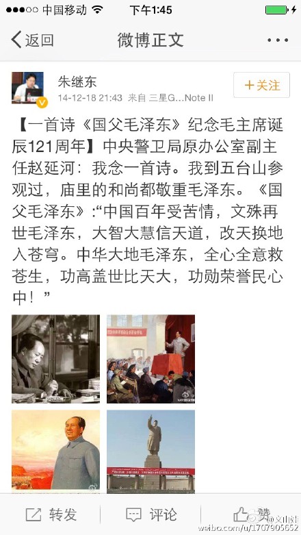 @文山娃:證實了。祝賀社科院国家文化安全与意识形态建设研究中心秘书长暨清华大学马克思主义博士后流动站博士后朱继东老師。朱老師為青年開的第一堂課或為:我與國父不得不說的故事。