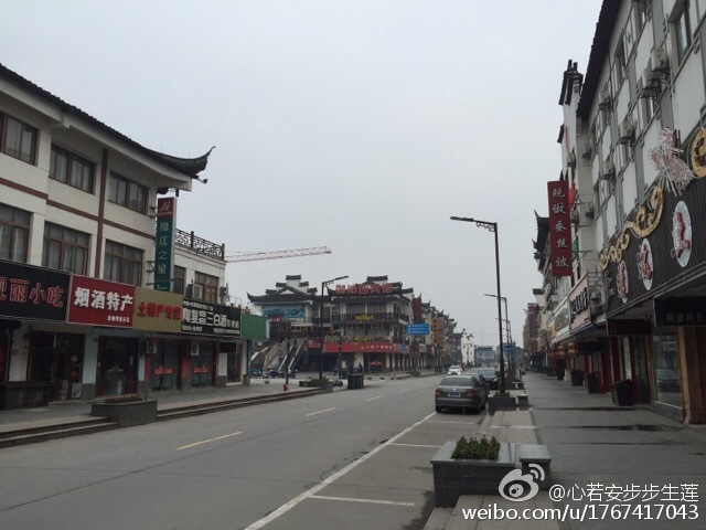 往日喧闹的乌镇大街空荡荡的,人烟稀少,如同“空城”。