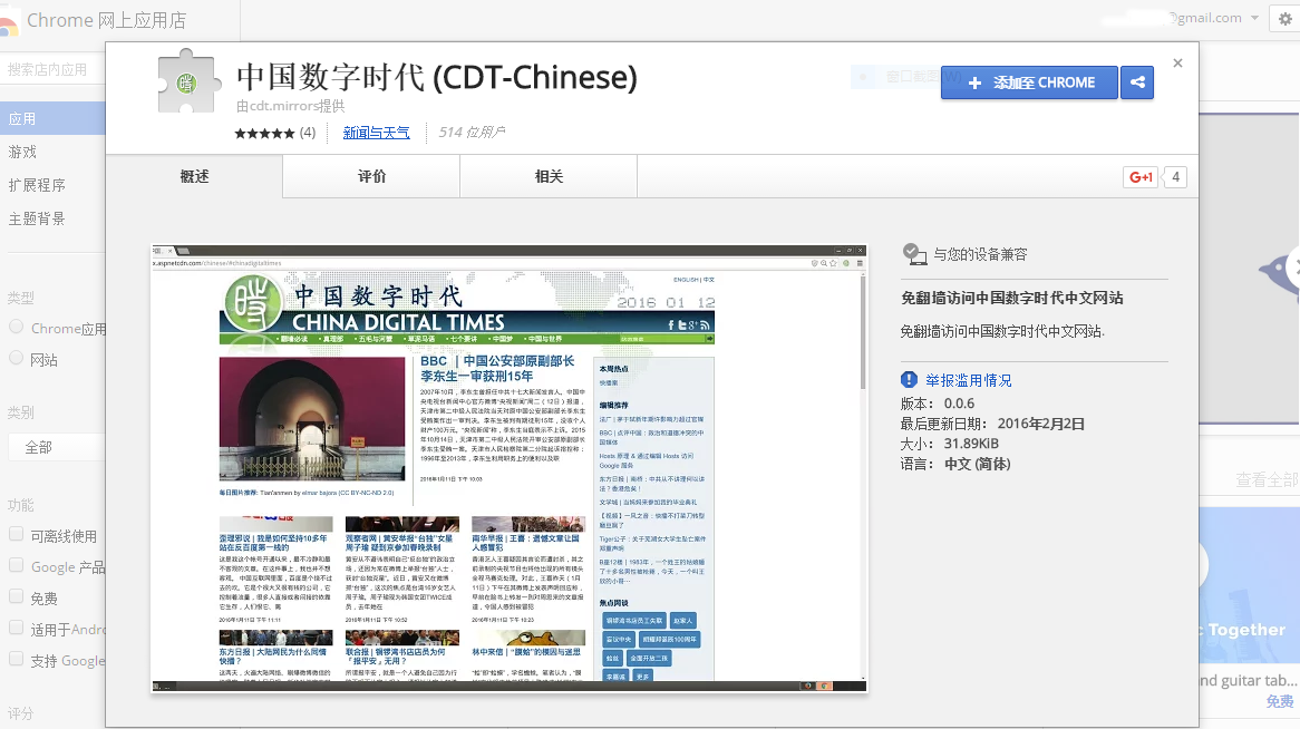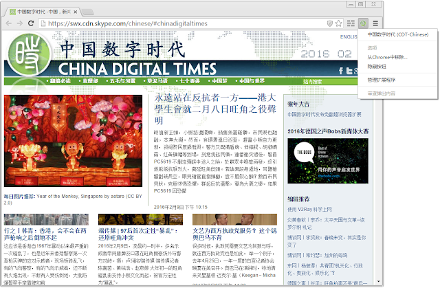 通过中国数字时代(China Digital Times, CDT) 的免翻墙浏览器扩展可以在不翻墙的情况下阅读中国数字时代网站的所有内容,该插件支持谷歌浏览器与火狐浏览器,本文介绍在谷歌浏览器下安装及使用的方法。