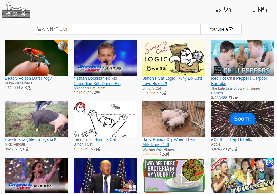 2016年1月16:网站正式上线,支持YouTube视频的搜索和观看。