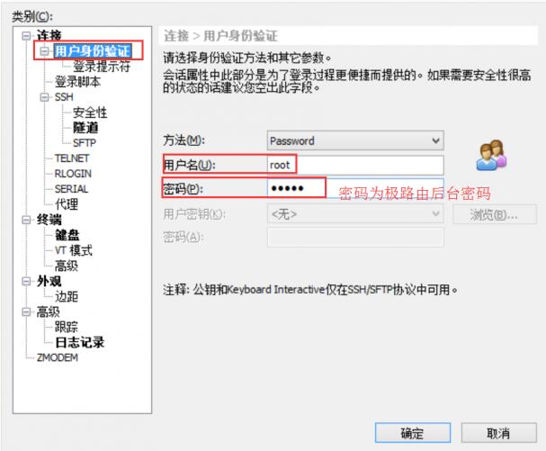 再设置用户身份验证的参数,如下图所示,用户名写root,密码写极路由后台密码。