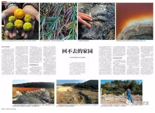 这个报道是在湖南桃源。它这儿有一个铝厂,是全球民企五百强,是湖南省排前几位的纳税大户。它造成的癌症村,还有大量的水污染、土壤污染、森林污染,没有人去触碰它。后来我就做了一周的调查,做出了这篇报道。