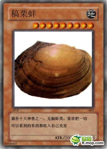 8.“稿栗蚌”无脑蚌类。这种无脑生活非常有意思,喜欢把一切可以看到的东西都收入自己壳里。而此地民俗也殊为有趣,此地之人生来面目丑陋,所以,长大之 后常常用橡皮将自己的面容搽干净,另找画师描画面容于脸上。当地画师常常苦于求他画像的人太多忙不过来,而制作了雕版,凡是来描画面容的人直接印刷上去就 是了。所以,当地人的面容常常让人有雷同之感,这都是一个模子做出来的原因造成的啊!