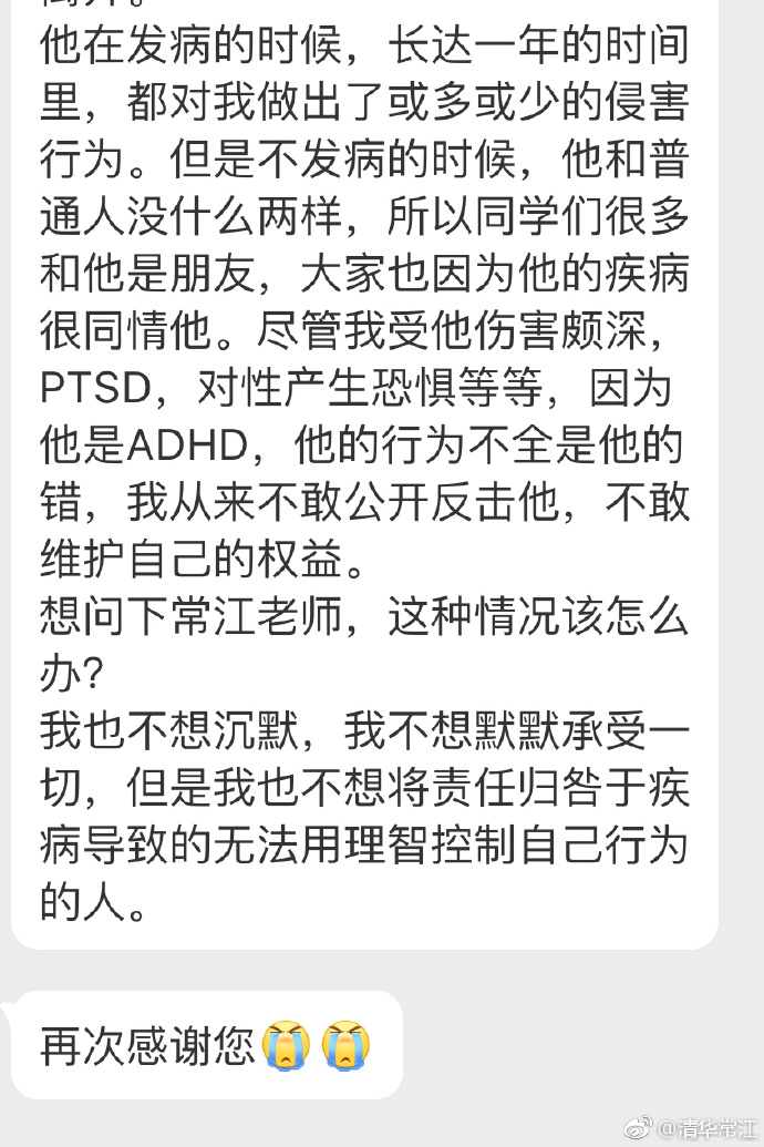 【编者按】本系列将根据微博@清华常江“让我成为你的声音”#I’ll be your voice#超级话题内容不定时更新。因文字、图片内容或涉及受害人自述遭侵害经历,可能引起读者不适,特此提醒。