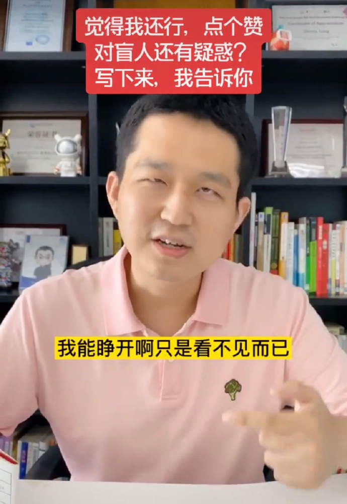 在网络暴力的影响之下,博主 @盲探-小龙蛋 也不得不发视频“自证盲人”: