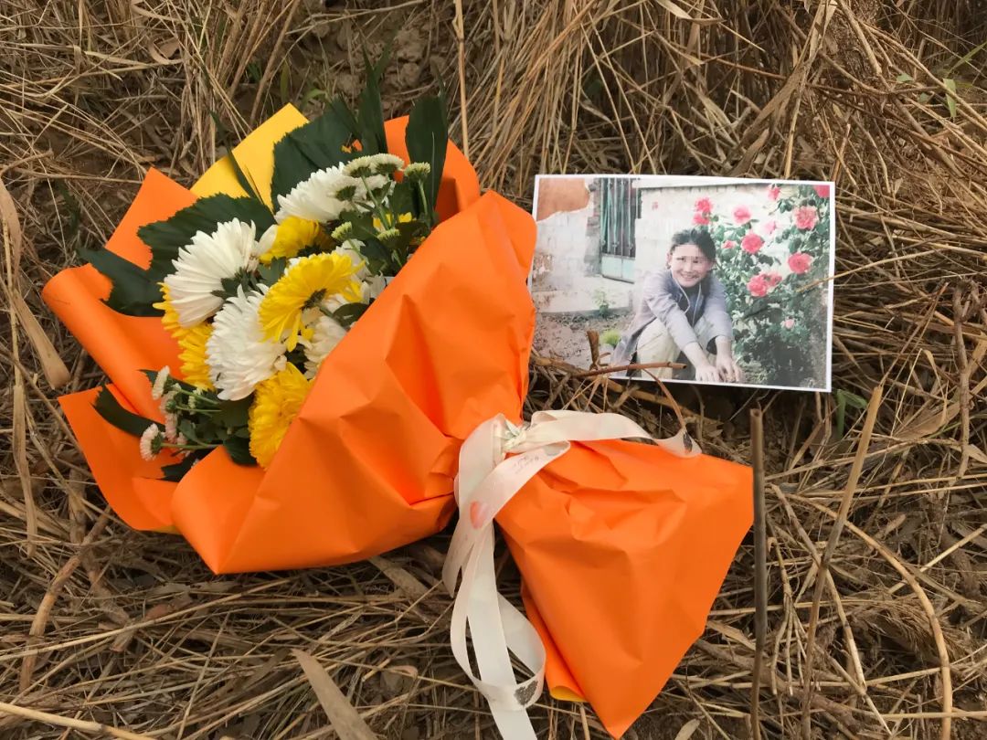 我们没能知道方洋洋安葬的地方,因为怕受人打扰,在案件获得最终结果之前,家人都不希望公开具体地址。于是我们将祭扫的花束放在了村口一个僻静的位置。