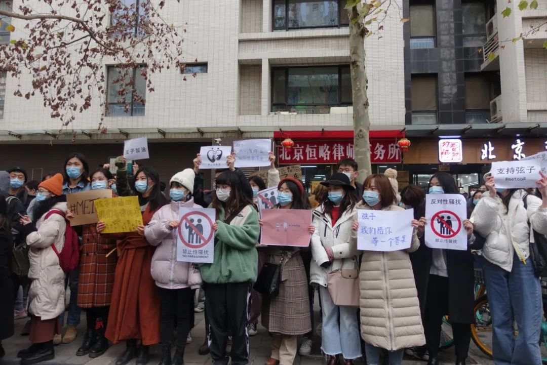 12月2日,弦子诉朱军性骚扰案于海淀区人民法院开庭,大量网友到现场围观声援,庭审结果休庭。【404文库】回声HUISHENG | 弦子和她的朋友们,1202海淀法院声援纪实