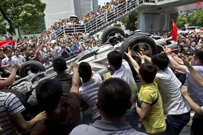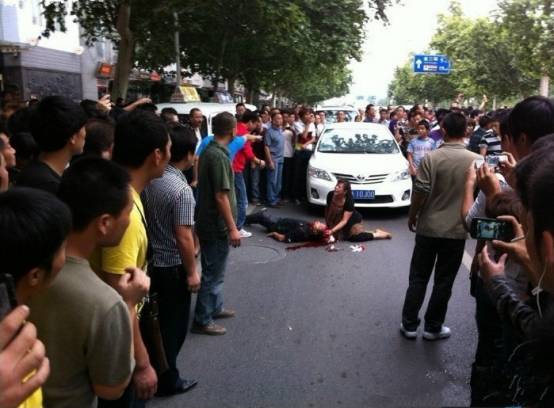 人群中,王菊玲站在车的这边苦苦地哀求砸车者,“我们错了,我们以后再也不买日本车了”。一转身,那边的丈夫已经瘫倒在一辆白色面包车下,血流如注。她嚎叫着跪倒在丈夫身边,喊着“救命”,眼前这个身体却毫无反应。