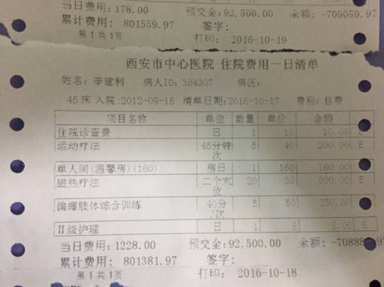 李建利的住院费用一日清单