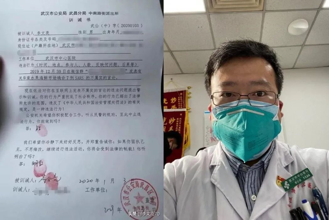 李文亮是武汉中心医院的眼科医生。2019年底,他在同学群里发布了一张检验单截图,称所在医院确诊了多例来自武汉华南水果海鲜市场、类似非典的肺炎病人,提醒群友们提高警惕。随即,他因散布不实信息被公安部门“训诫”。1月10日,李文亮出现症状,12日住进医院,2月1日确诊感染新冠肺炎,后病情加重,于2月7日凌晨因抢救无效去世。人们在哀悼、悲痛的同时,也向他致以崇高敬意。2月7日,国家监察委决定就“群众反映的涉及李文亮医生的有关情况”开展调查。4月2日,李文亮等14名牺牲在抗疫一线的医护人员和社区工作人员被追认为“烈士”。