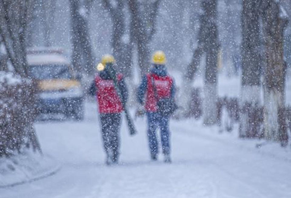 2020年12月29日凌晨,润肺下班,倒在乌鲁木齐飘过雪的街头。图为27日,乌鲁木齐降雪,最低温降至零下17℃。 (视觉中国/图)