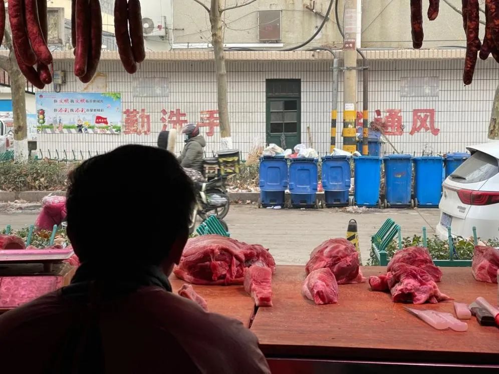 韩本祥的肉铺正对着老刘倒下的地方。图/魏荣欢
