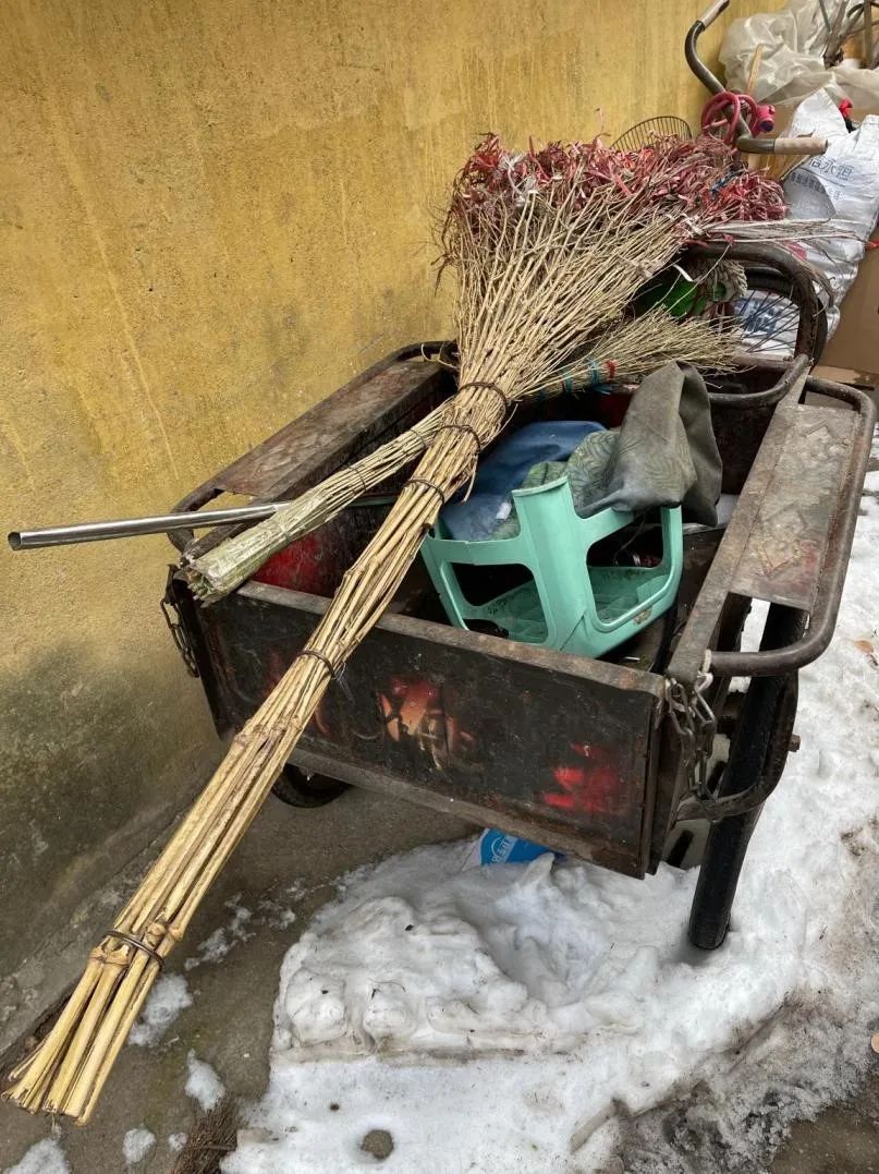 早上7点半左右,老刘干完一波活儿,回到租的平房,工友们见到他,身后的三轮车是空的,上身穿着几天前刚买的深蓝色毛领棉衣,款式年轻,尺码收身,“人老心不老”,大家曾调侃这身行头。一个工友说,老刘被叫去学校门口帮忙铲雪,刚回来。