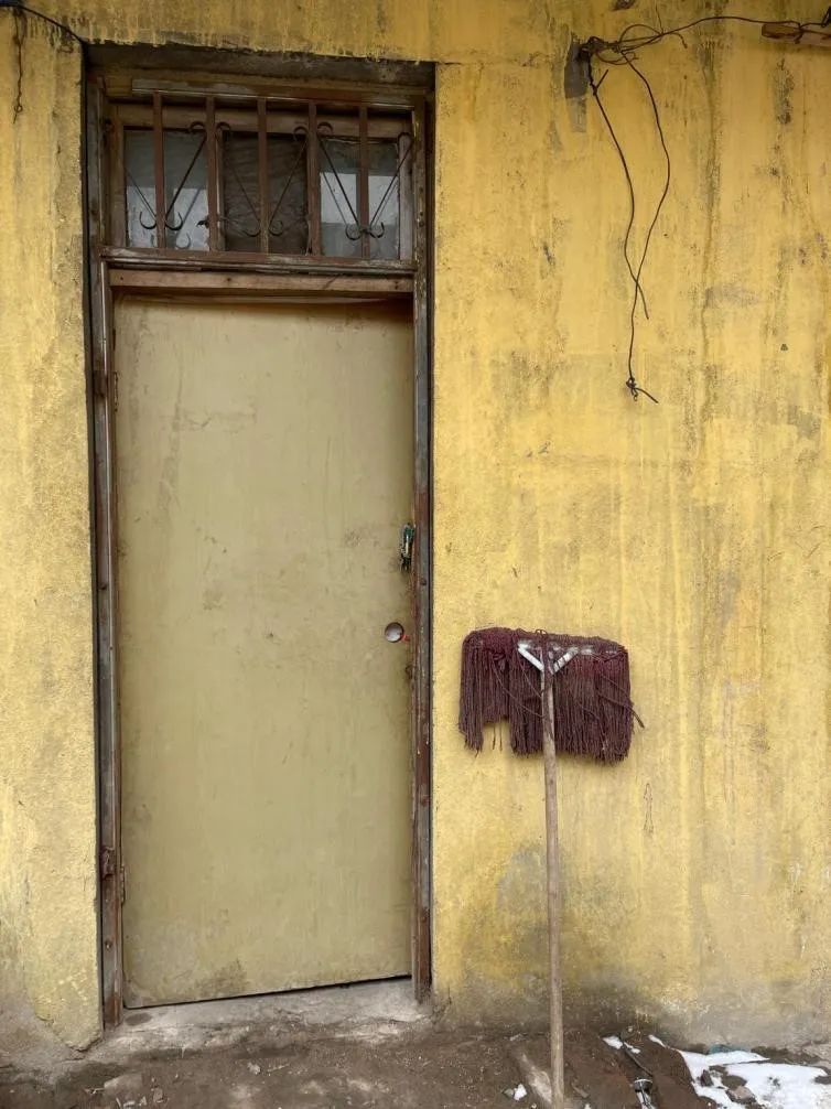 老刘生前住的房间大概6平米,从羲之路菜市场向东走一两分钟就能到,木板床铺着薄褥子,盖着新发的橙色棉工服,工友说他还没穿过;桌箱上四处堆着生活杂物,屋里最光亮的是放烟卷的红漆铁盒。门前是条黄色窄巷,雪完全没被清扫,被车辙和脚印压成滑溜溜的冰路,斑驳着土色。生锈的铁门、木头门大多虚掩着,不能完全合上。两排平房被夹在楼房居民区中间的低洼处,这里是环卫工们的家,房租每月只要一百块。