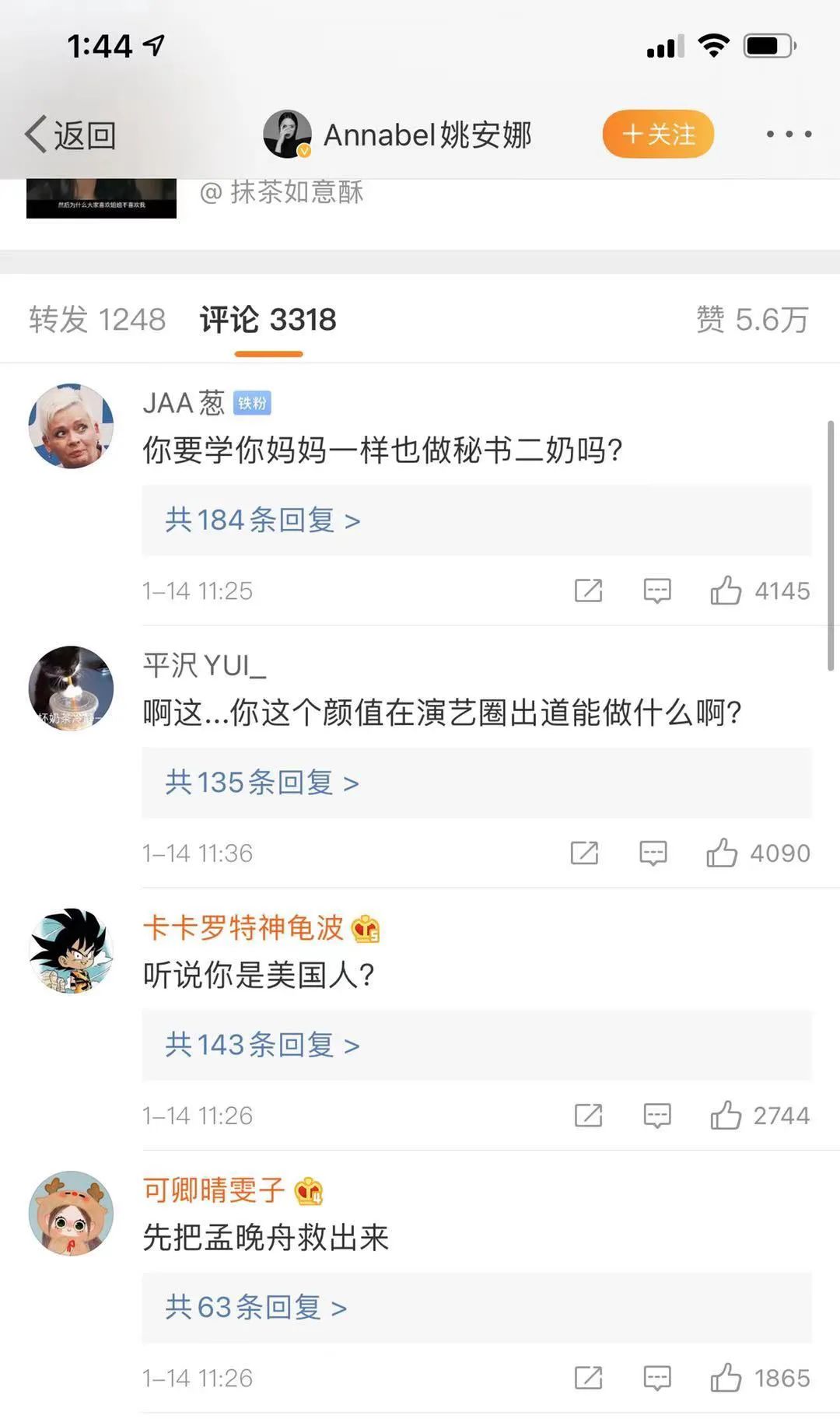 在姚安娜的微博,留言更是惨不忍睹。