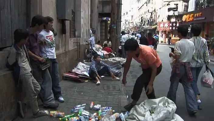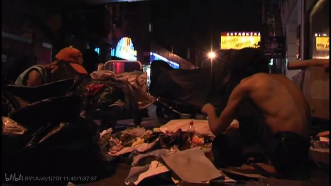 只不过,它所拍摄的不是来来往往、游走于商场和餐厅之间的游客们,而是在这条街上捡塑料瓶、偷东西、卖唱、要饭的那些人。