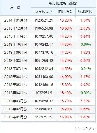 让我们把时光拉回到8年前,看看那时的M2情况:2013年1月份的M2是99.2万亿。那一年的3月份,也是历史上第一次M2超过了百万亿,非常值得记忆。
