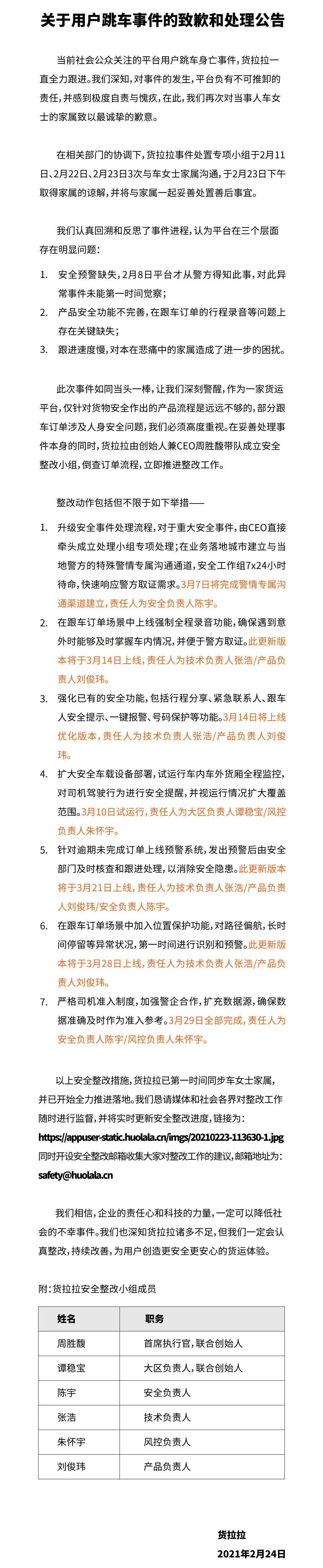 事实上,有滴滴司机出事的教训在前,这些货拉拉本可及早事先预防,但现实却是:直到这次出事半个多月后的2月24日,在公众舆论的巨大压力下,货拉拉才公开向死者家属道歉,承认平台存在安全预警缺失等问题,宣布将上线全程录音功能等7项整改措施。