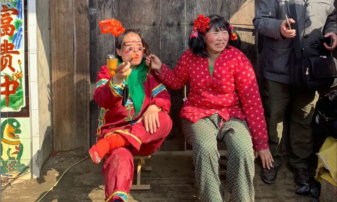 第二天早上天刚亮,她们就已经在拉面哥家门口爬上了车顶开始表演。她们穿着大红大绿的衣服,头上绑着红色的塑料袋,两颊涂着夸张的腮红,戴着墨镜在车顶上又唱又跳,扯着嗓子向拉面哥表白。