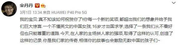 然而在中国的民族主义语境中,这些与东方传统文化迥异的气质都无关紧要,只要她挂着“中国人”这个身份头衔,她通过个人奋斗而实现的成就就是中国的骄傲,哪怕它其实代表的是彻头彻尾的“美国梦”。(与其关系不错的)赵婷的继母、中国著名演员宋丹丹就为这个“在人家的主场“拼得的属于中国人的成功而称赞不已。在这样一种有些荒谬的集体自豪感背后,往往藏着极度脆弱的玻璃心。