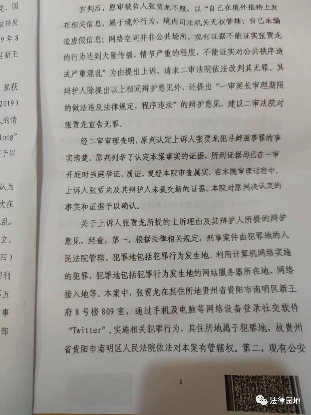 张贾龙不服有罪判决,随即向贵阳市中级法院提起上诉。