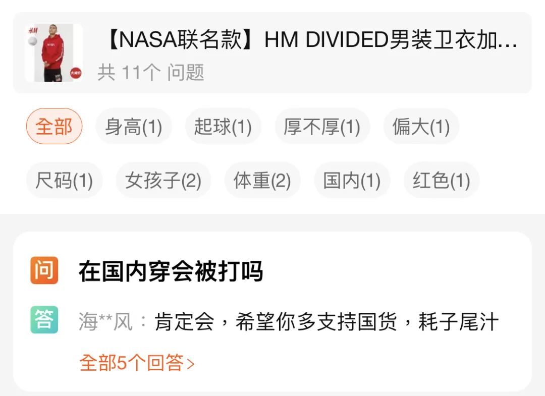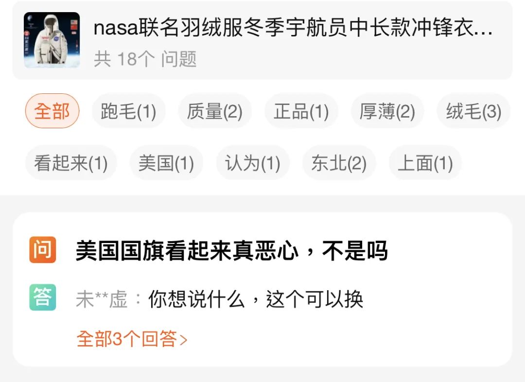 该品牌之前出了一系列使用NASA元素的服装,令中国网民不舒服的是:衣服上有美国国旗。