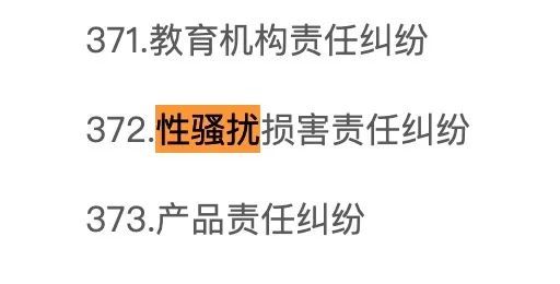 2018年12月12日,最高人民法院发布《关于增加民事案件案由的通知》,“性骚扰损害责任纠纷”首次成为独立案由。这个通知的第二条规定:“在第九部分‘侵权责任纠纷’的‘348 、教育机构责任纠纷’之后增加一个第三级案由‘348之一、性骚扰损害责任纠纷’。”该通知2019年1月1日生效。