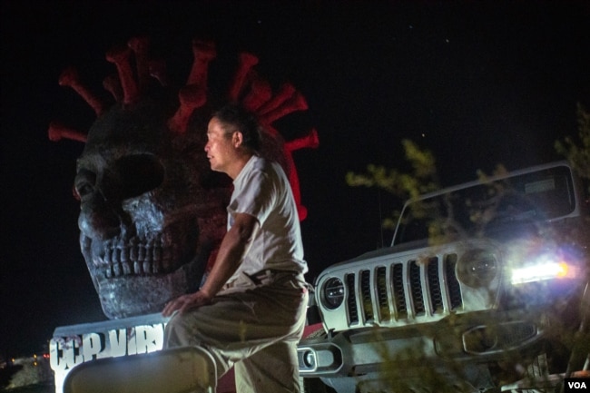 每次守夜,陈维明和其他几位义工都把车停在“中共病毒”的边上。从去年9月开始就持续在雕塑公园服务的Jonas说,他每晚都处于浅层睡眠当中,假如远处高速公路上或附近加油站的灯光出现明显变化,他没准就会醒来。
