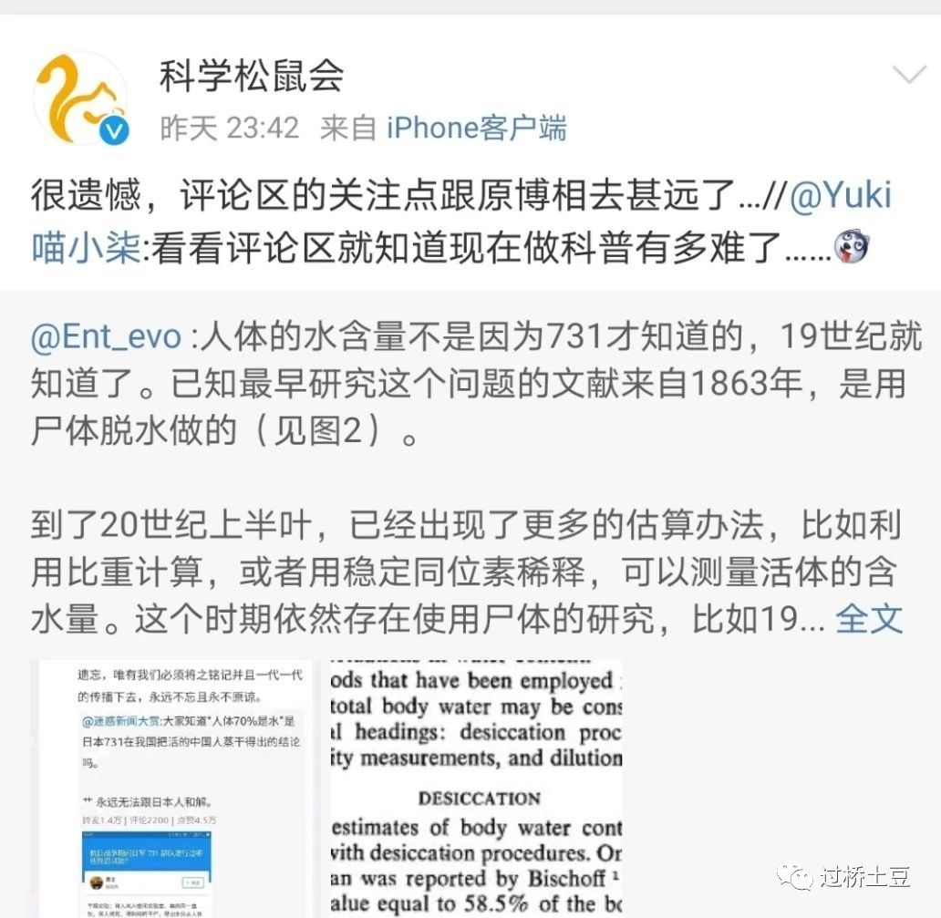即使@Ent_evo错了,他在原文也没有为731部队说好话。但是后来,就变成了为日本洗地,为731部队洗地。科学的真伪之争,就此变成了政治之争。