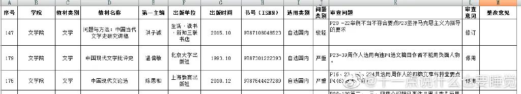 早在这份“教材排查情况表”曝出来之前,就有网友在微博上对洪子诚版《中国当代文学史》被“收上去”去表示不解。所以,这也可能并非某一所学校的擅自行动。