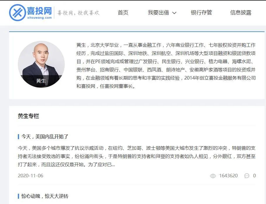 解释一下,这个案情通报中说的“黄某”,就是《黄生看金融》公号的号主,其实早在半年前,网上就已经传出了他涉嫌非法集资让不少投资者损失巨大,已经被限制出境的消息。当时大家都预判这家伙混不长了,我当时还写过《为什么我写不了“美国害怕了”“日本吓尿了”》一文,欢送了一下黄生老师。