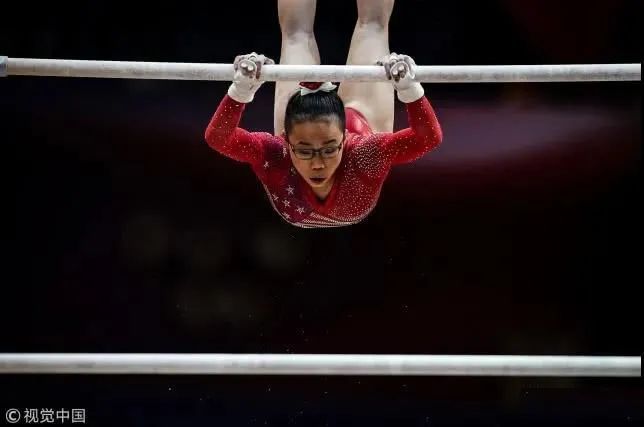 最显著的特点就是戴眼镜比赛,这在体操赛事上,应该很少见。