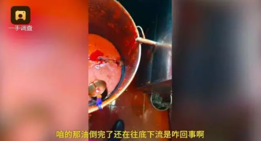沥一沥、重新加热一下,把里面上桌客人剩下的肉末、菜叶过滤掉,这样一份“新的”四川老油就可以重新当作外卖出售,里面不知道沾满了多少上桌客人的唾液和细菌。