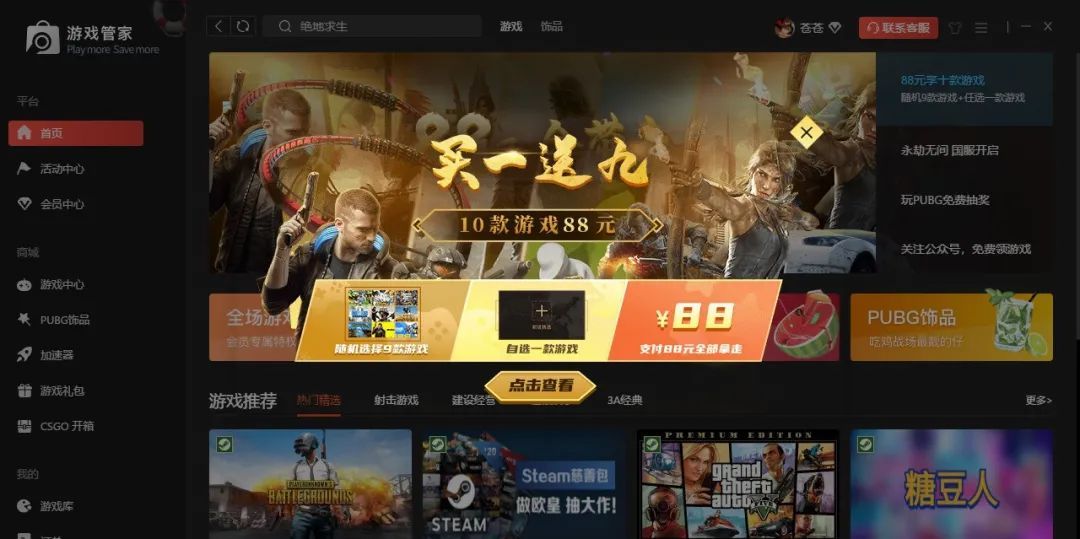 在所有冒牌Steam平台里,广告打得最多,受害者也最多的,就是上文里那位9成9仿真度的Steam游戏管家,着重聊一聊它。这个平台确实能玩游戏,可它仍是座深渊。