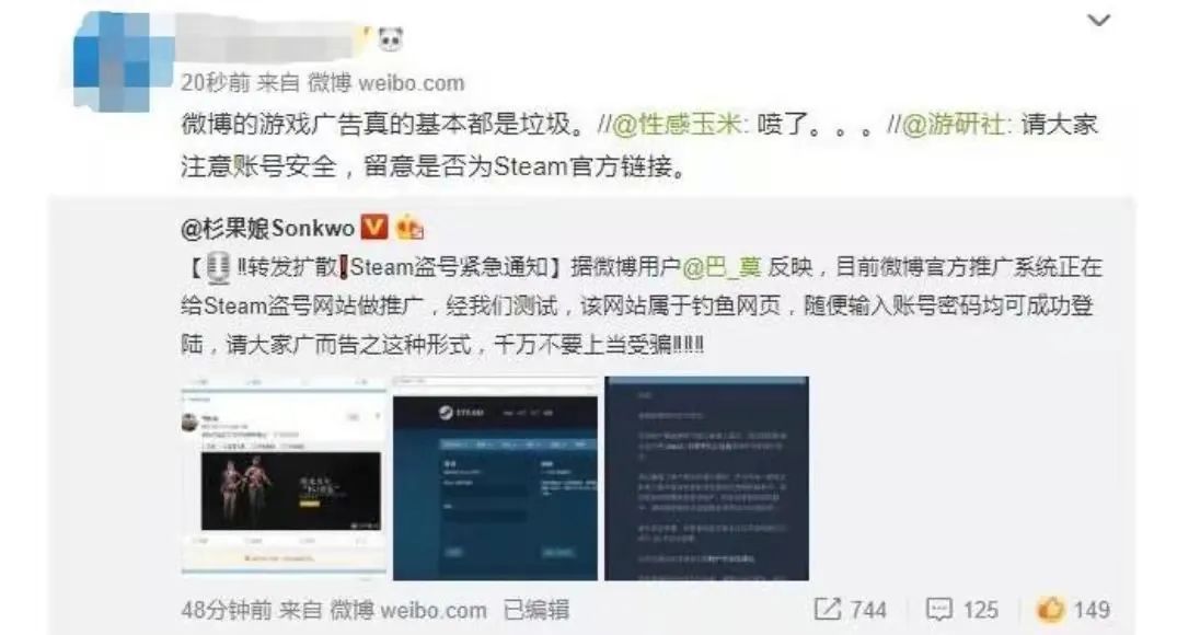 从时间线来看,这个行业是从《绝地求生》爆火后滋生的。起初这些人比现在还高调,曾在微博推广《绝地求生》钓鱼网站,让玩家在高仿官网输入账号密码领装备,进而收集信息大批量盗取Steam账号。