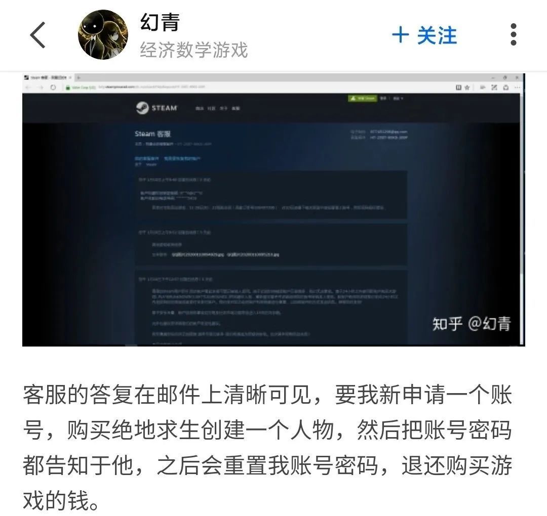 或是更骚的,比如先盗了你大号使其冻结,然后伪装成Steam客服给你发邮件,要求你申请新账号买《绝地求生》。你一顿操作,结果大小两个号都没了。