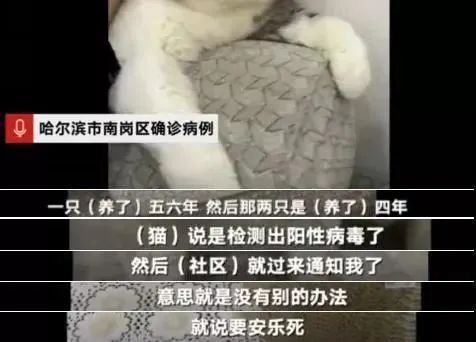 9月21日起,黑龙江在一周内出现75例本土感染者,哈尔滨一位确诊患者刘女士在医院治疗时得知,她家3只猫的肛拭子采样结果均为阳性,由于目前对动物没有专业治疗方法,最终疾控部门对这3只猫全部执行安乐死。然而当时对猫的检测既不是在专业的动物医院做的,通报程序也未给猫主人和公众一个基本的交代。