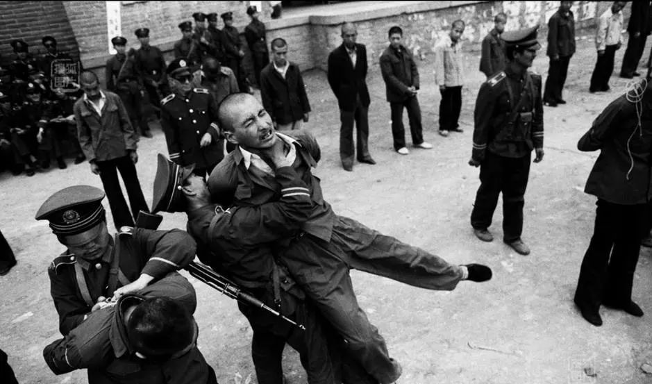 天亮了,人行道上站满了惊诧的市民,汽车禁止通行,高音喇叭里播放着人民日报关于严打的社论。马路正中,坏人们统一被从身后缚住两臂,前后间隔一米,用麻绳串成一路纵队缓缓行走,两边是持枪押送的军警。我在押送序列的中部,前后望去,竟然望不到队伍的首尾,你想想这个队伍会有多长?而这只是个不到50万人口的中小城市。