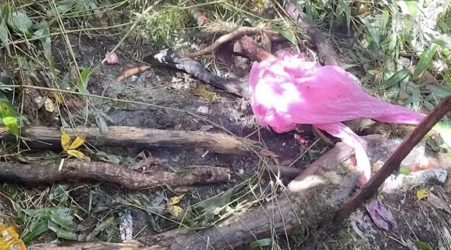 救援过程中还发现了粉色的一次性塑料雨衣,经同事确认,是队员们带上山的装备。