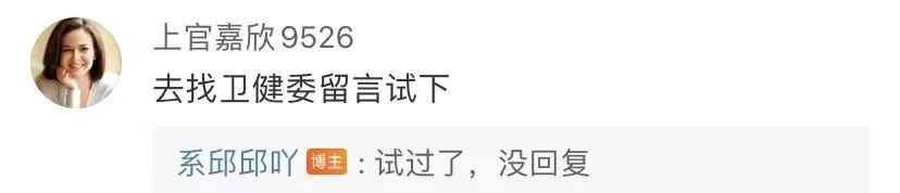 小编也不是神,类似向卫健委求助的留言,混杂在大量网友的回复中,恐怕很容易被遗漏。而且,卫健委公众号又不是服务热线,也不是信访办,根本没有那么多人手,应付那么多求助。