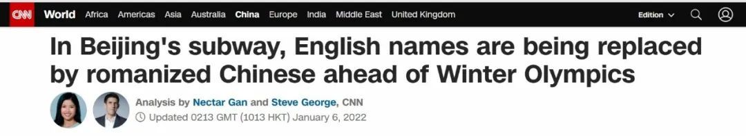 “在冬奥会前,北京地铁站的英文名称正被汉语拼音所取代。”