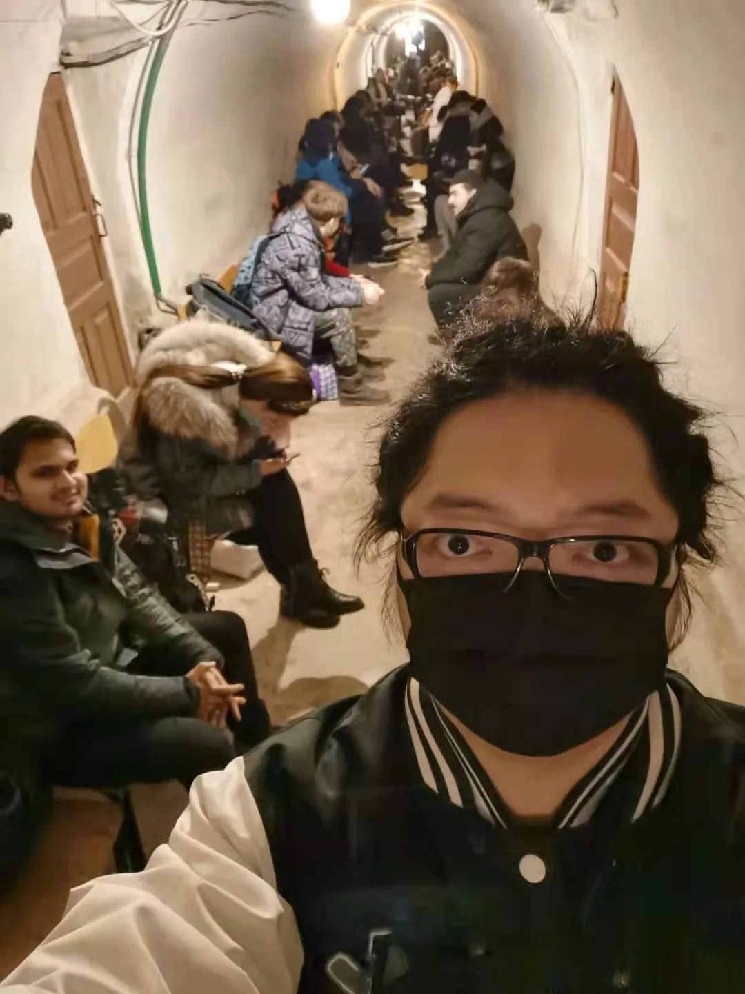 在我接触的近20名中国留学生中,很多人回忆起躲在防空洞的日子,都觉得时间像是静止了。白天到外面抢购,防空警报响起时藏在里面,“乏味”“没什么可讲的”是多数人的感觉。地面上千万种不同的生活,在这里坍缩成生存——水、电、网、食物、干净、保暖、睡眠,在一些地方显得珍稀可贵。
