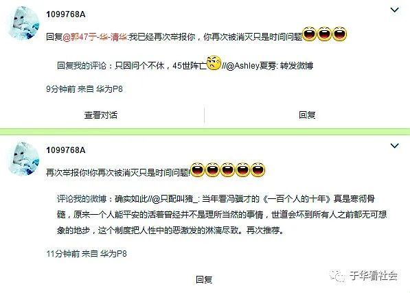 对世间大事小情有不同看法本属正常,不同观点之间存在争论是为常态。讨论也好,争辩也罢,应该本着公平公正的规则:有法依法,有理讲理,就事论事,不服来辩,依据事实和逻辑,不得人身攻击。只有在道理亏、判断错、无逻辑、无证据而又不死认输的时候,才会诉诸举报,借助强权之手压制甚至消灭对方;这明显是不合法、不讲理、不要脸的下流作法。而权力一旦支持了这种下流,出手行不公不义之举,受害的就不仅仅是被举报一方,也不仅仅是上述恶意举报的一方,它还会污染了整个言论环境,瓦解了有机的社会。因为其昭示并宣扬了不问事实、不辨是非、不讲逻辑、不分善恶的强权独大“原则”。