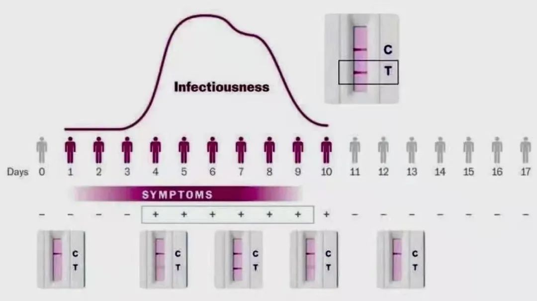 D7-D10:康复期。疫苗训练过几轮的免疫系统,逐渐打败Omicron,从D7开始,症状逐渐消失,有时甚至忘记吃药。病患的生理不适,慢慢被隔离的心理不适所取代,恨不得每个小时测一次,看是否转阴。D9-D10,基本可以转阴。连续两日转阴后,传染性基本也消失,按照香港规矩,即可解除隔离回归正常生活。有不少案例,在D8或D9时,T线的颜色还是比较深,但可能一夜之后突然就消失了,没有颜色逐渐变浅的过程,所以患者并不要因为颜色没有变浅而着急。
