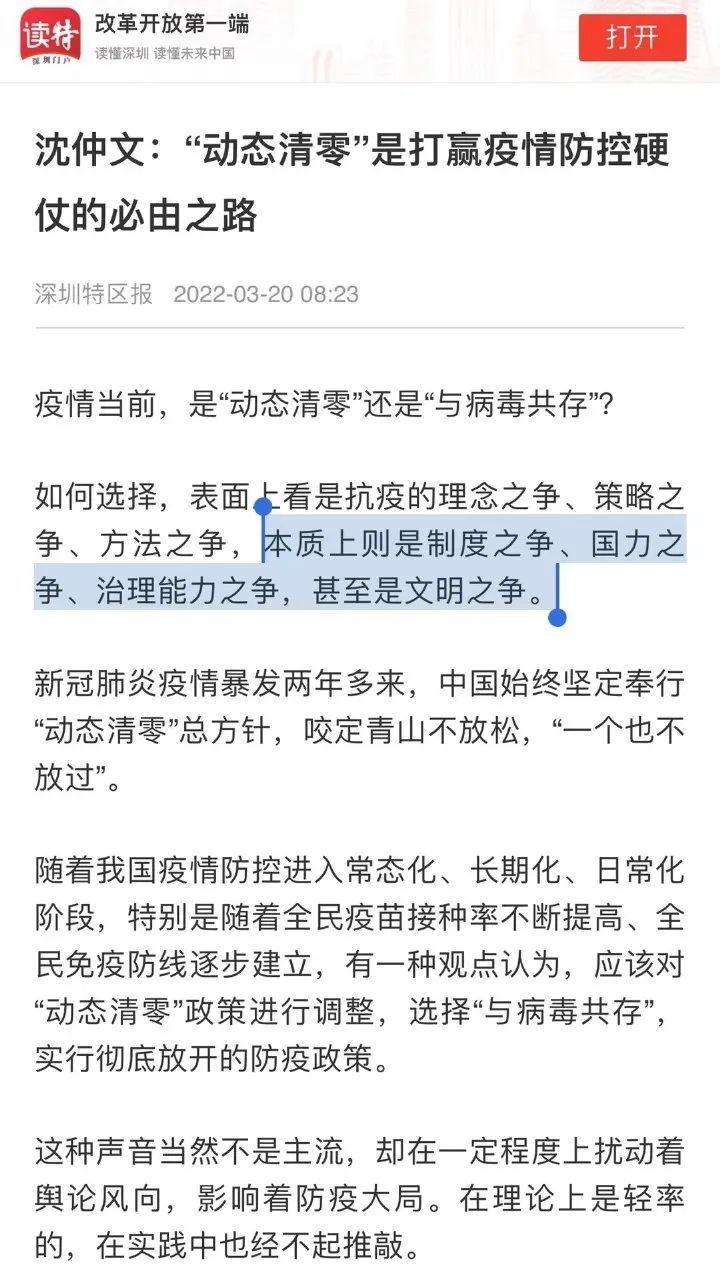 我昨天写了篇文章,看了不同人的不同反映,我也看了最近关于疫情封控的各种群聊和不少文章。特别是昨天深圳特区报的文章,让我很是反感。