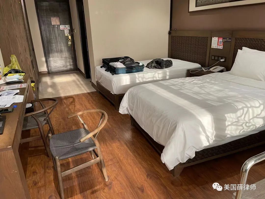 各种登记、填表格、做核酸,然后被安排去做大巴到隔离酒店,这个过程大概搞了有七八个小时。我们都不知道下一站去哪里,在什么酒店隔离。后来上了大巴车,来到了广州从化的一家亨来斯登酒店。大巴上弥漫着消毒水的味道,车厢内都是消毒残留下的痕迹。来到酒店后,一个一个下车消毒、登记和入住。当时感觉恍如隔世,好像自己来到了另外一个世界,预感不妙。
